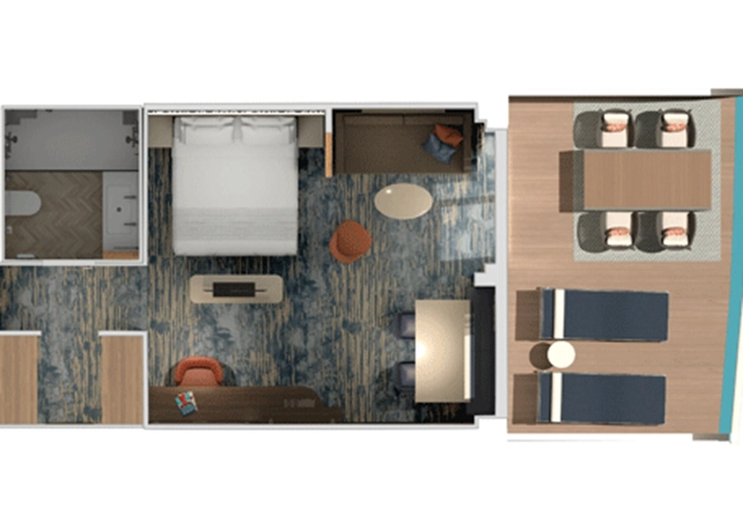 | HU - Suite Havana Cabana Corner 33 m² + vonkajšie rohové patio 15 m². 8. paluba vpredu. Max 3 osoby. Tropický štýl, vstup do exkluzívnej zóny Havana. Výhody Suite. | 4 270 € 2 135 € za osobu | ||
