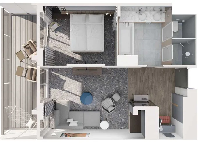 | JKCO - Junior Suite s balkónom C 26 m² + balkón 7 m² so stoličkami a podnožkami. 7. paluba. Max 4 osoby. Výhody Junior Suite. | 8 358 € 4 179 € za osobu | ||